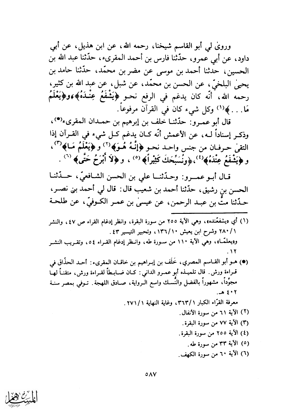قال أبو عمرو: حدثنا خلف بن إبرهيم بن حمدان المقرئ.