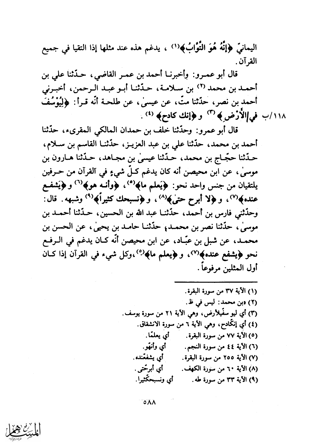 موسى، عن ابن محيصن أنه كان يدغم كل شيءٍ في القرآن من حرفين