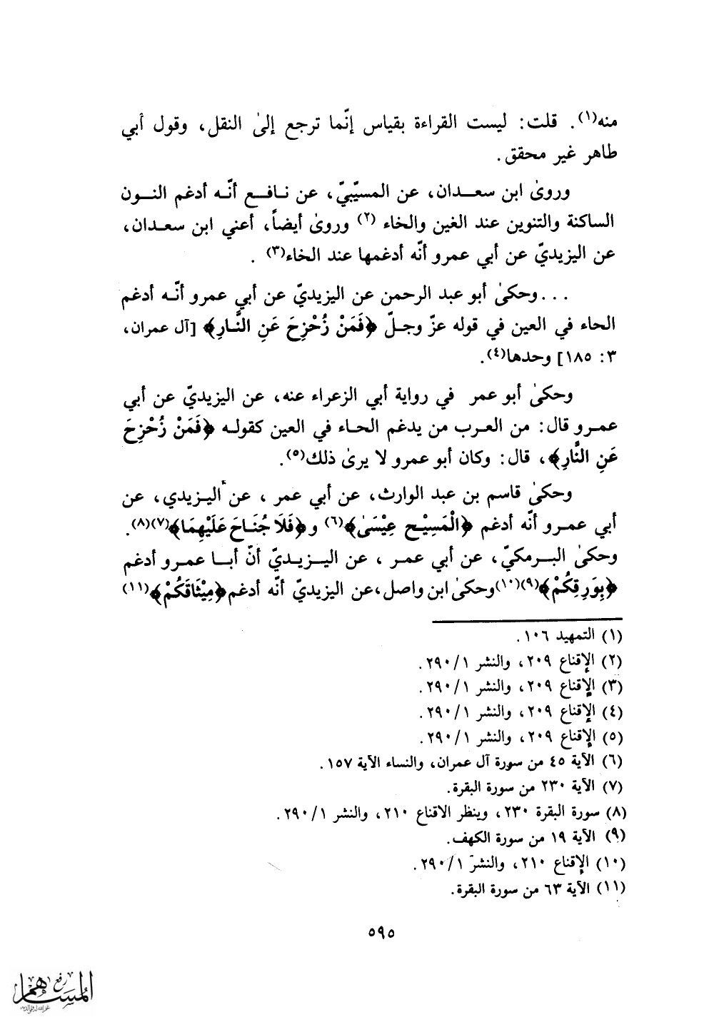 أبي عمرو أنه أدغم (الْمسِيْح عِيْسى) و (فَلَا جُنَاحَ عَلَيْهِمَا) .
