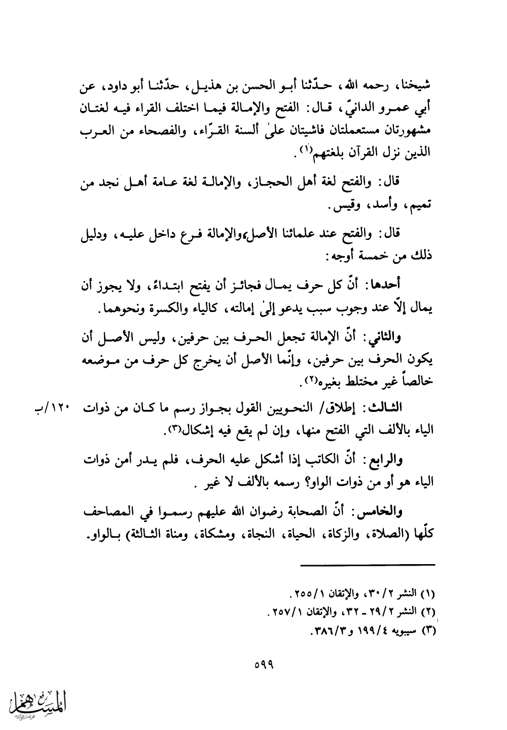 أبي عمرو الداني، قال: الفتح والإمالة فيما اختلف القراء فيه لغتان