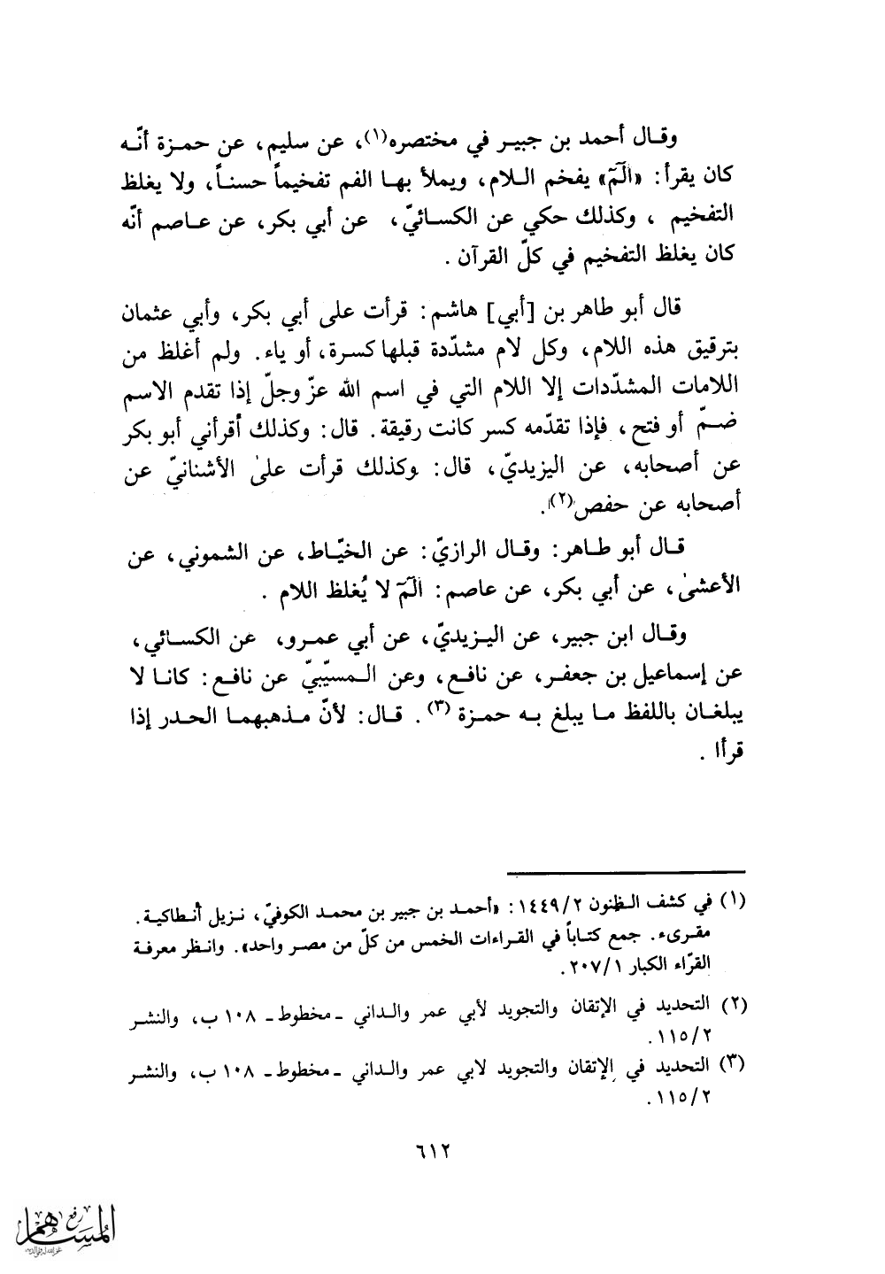 وقال أحمد بن جبير في مختصره، عن سليم، عن حمزة أنه