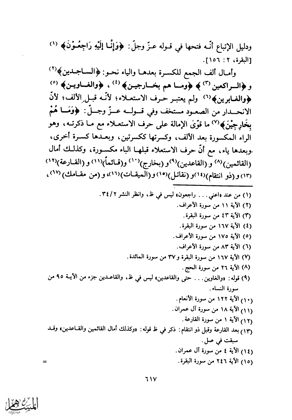 و (الراكعين) (وما هم بخارجين) ، (والغاوين)