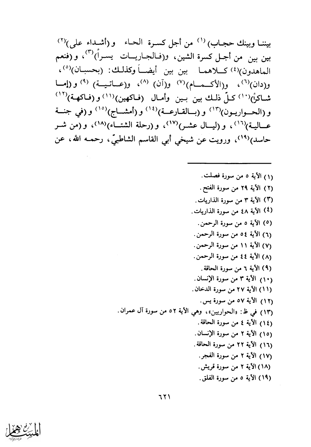 بين ين من أجل كسرة الشين، و (فالجاريات يسراً) .