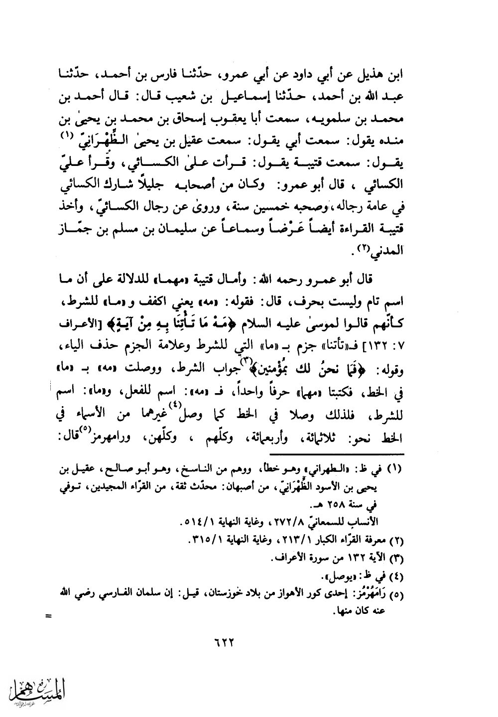قال أبو عمرو رحمه الله: وأمال قتيبة (مهما) للدلالة على أن ما