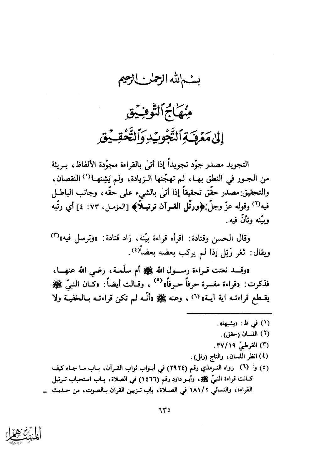 منهاجُ التوفيق إِلى معرفة التجويد والتحقيق