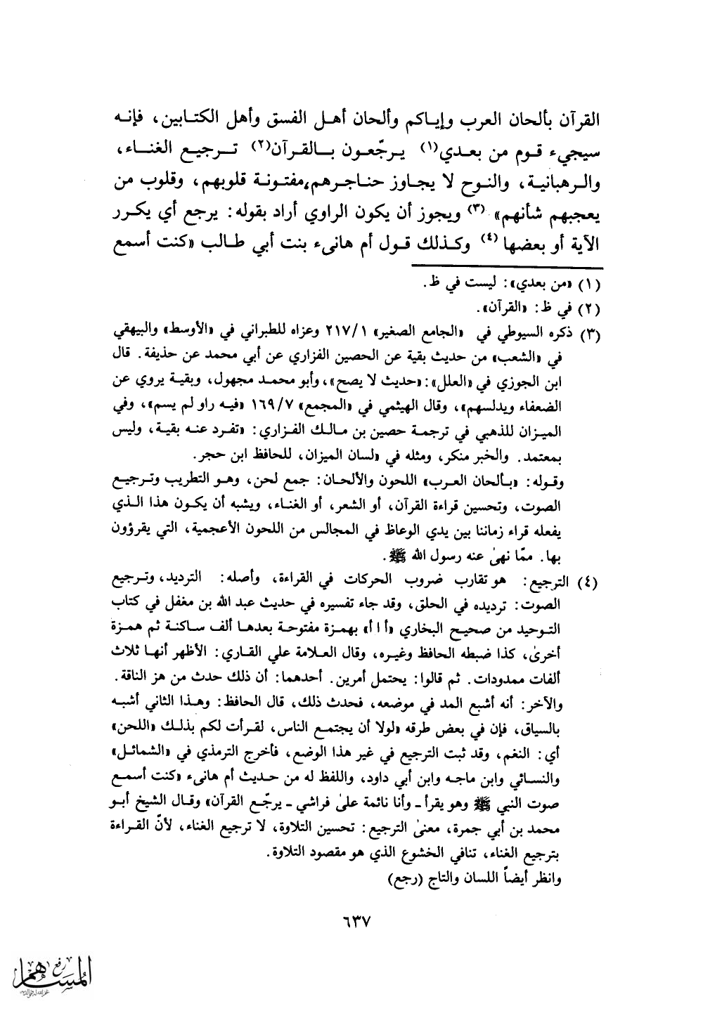 "اقرؤوا القرآن بألحان العرب وإياكم وألحان أهل الفسق وأهل الكتابين، فإنه