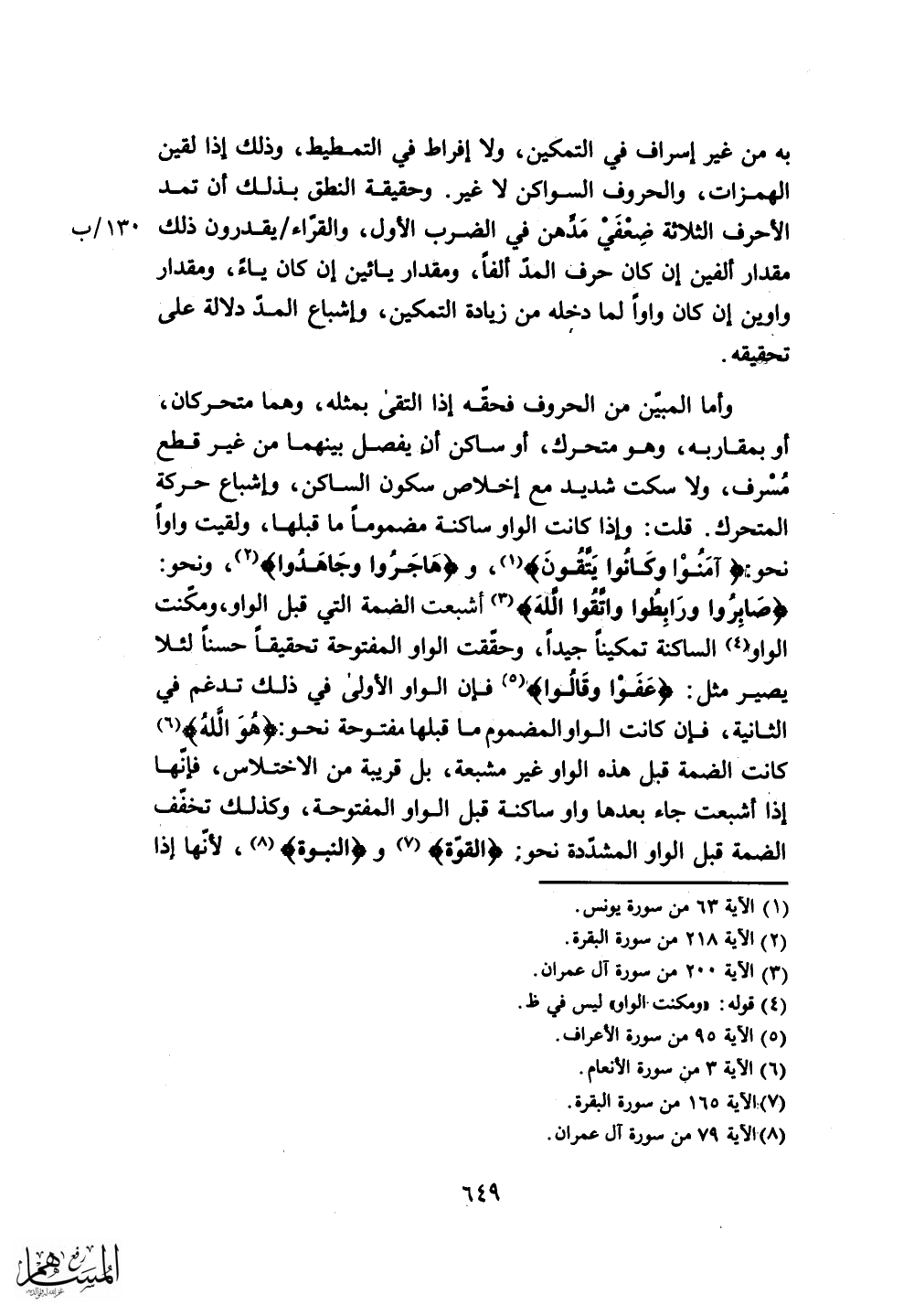 مُسْرف، ولا سكت شديد مع إخلاص سكون الساكن، وإشباع حركة