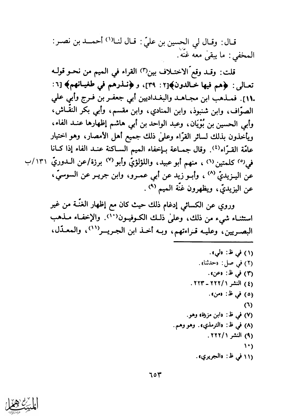 عن اليزيدي، ويظهرون غنة الميم.