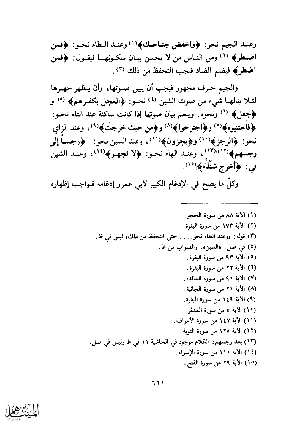 وعند الجيم نحو: (واخفض جناحك) وعند الطاء نحو: (فمن اضطر)