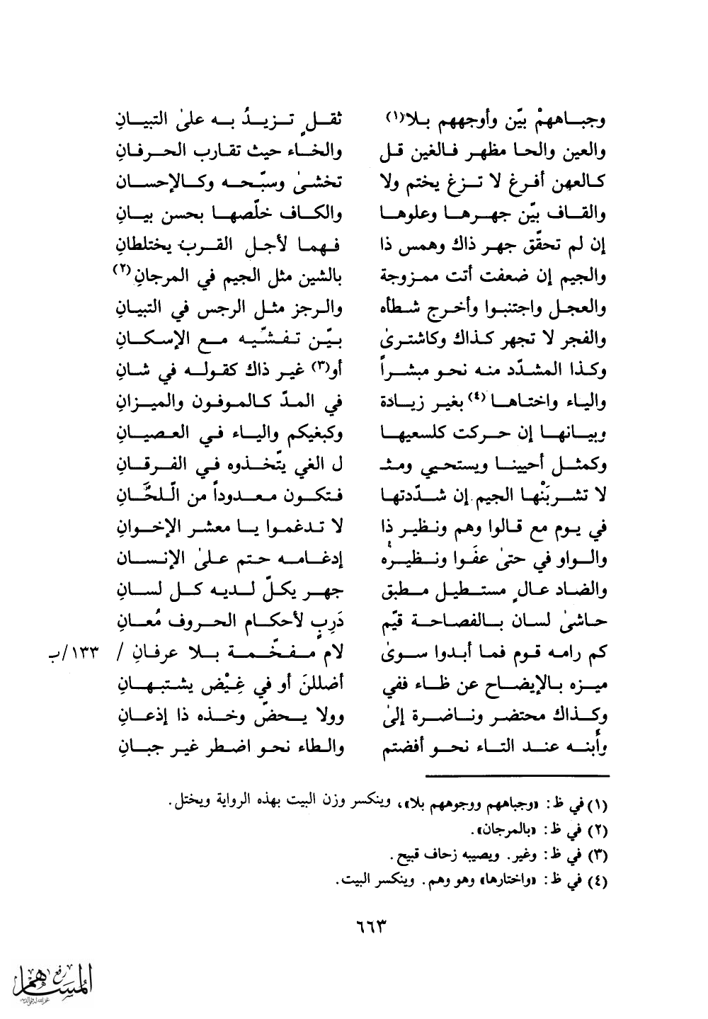 حاشى لسان بالفصاحة قيِّم. . . دَرِب لأحكام الحروف مُعانِ