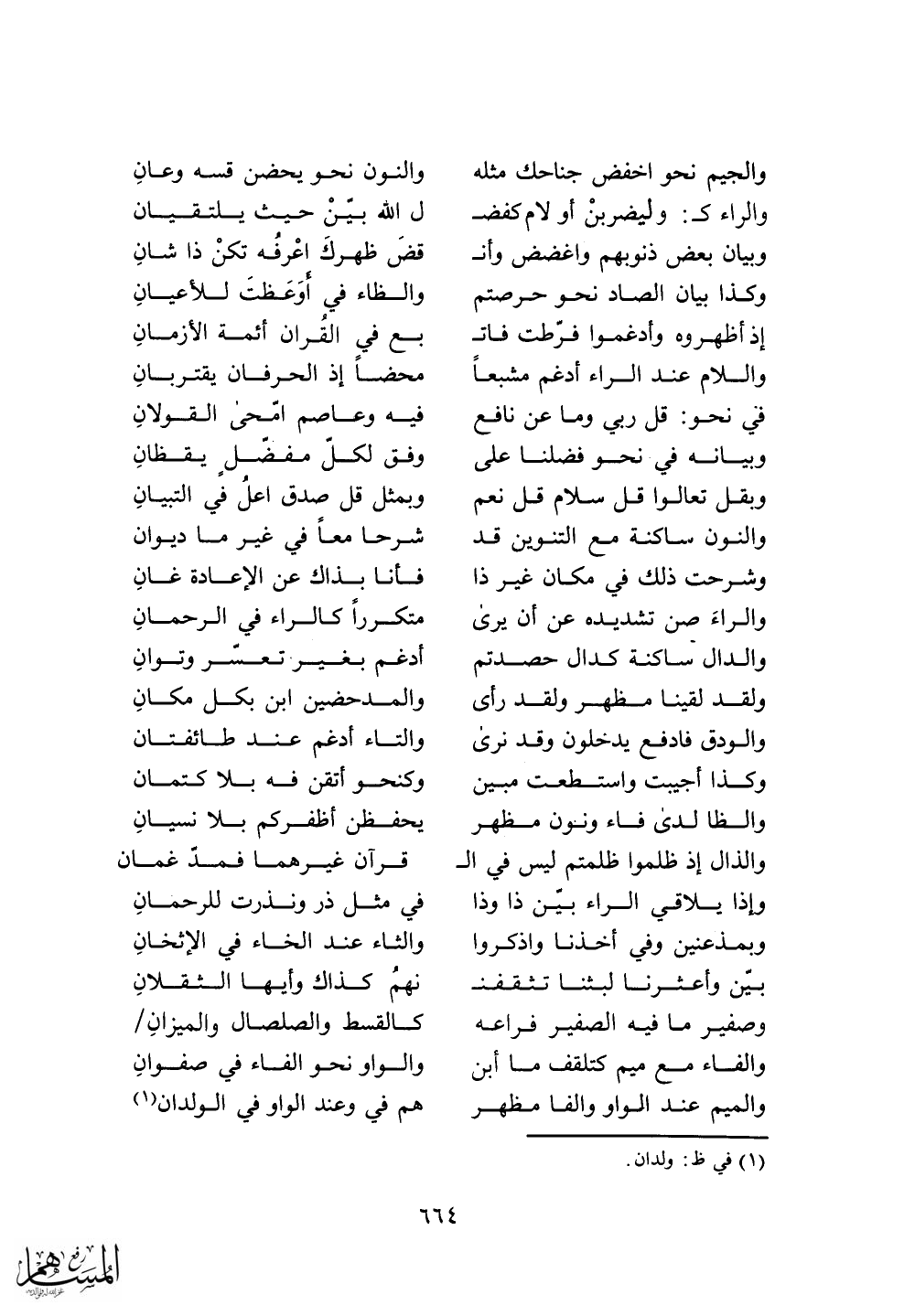 والميم عند الواو والفا مظهر. . . هم في وعند الواو في الولدان