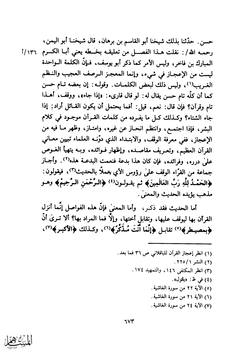 الإعجاز، ففي معرفة الوقف، والابتداء الذي دونه العلماء تبيين معاني
