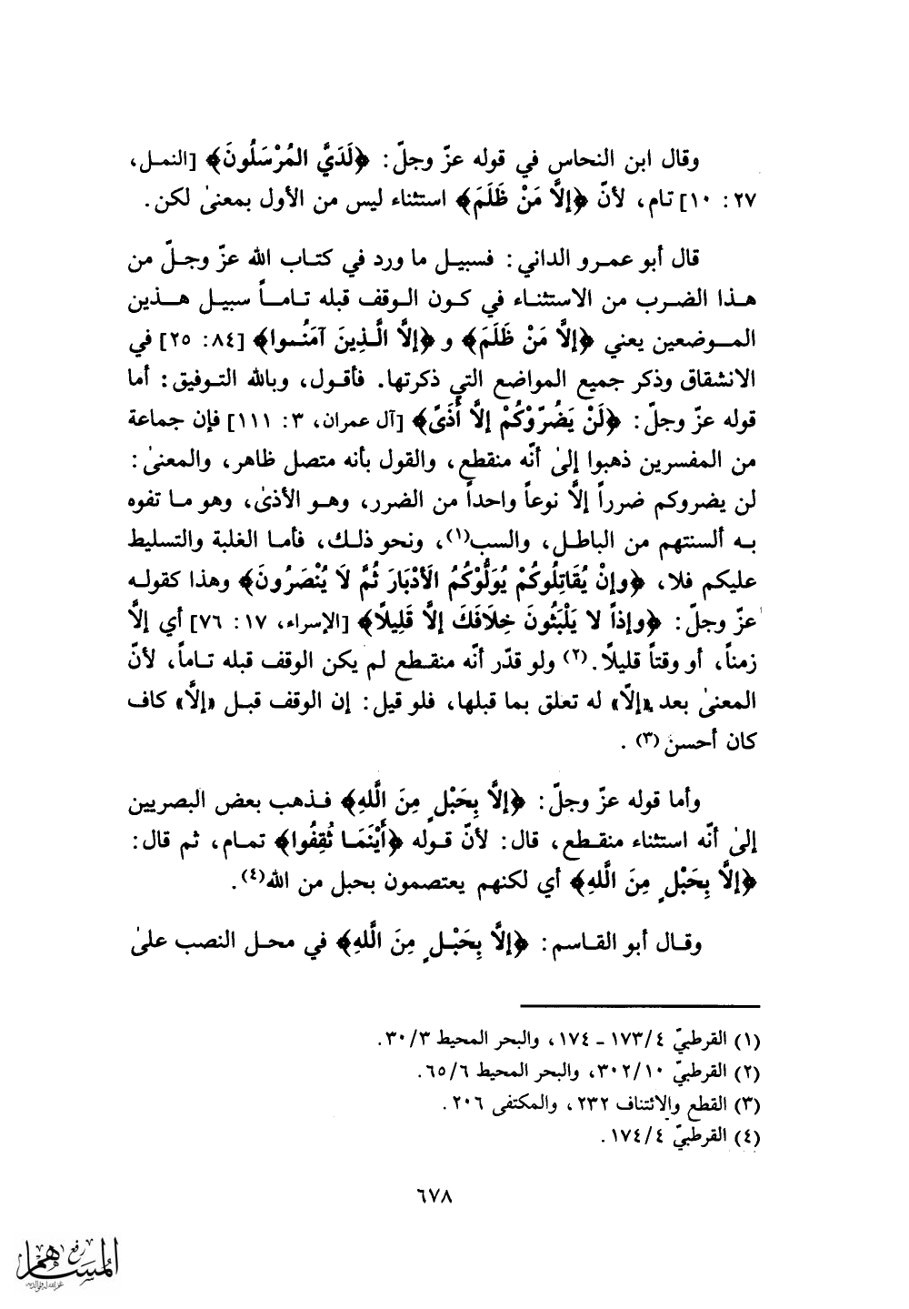 هذا الضرب من الاستثناء في كون الوقف قبله تاماً سبيل هذين