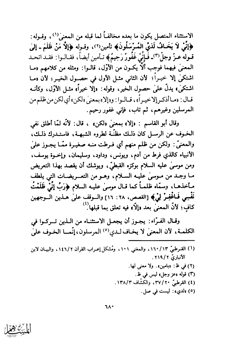 ((إنِّيْ لَا يَخَافُ لَدَىَّ المُرْسَلُونَ) تأمين، وقوِله (إلَّا مَنْ ظَلَمَ - إلى