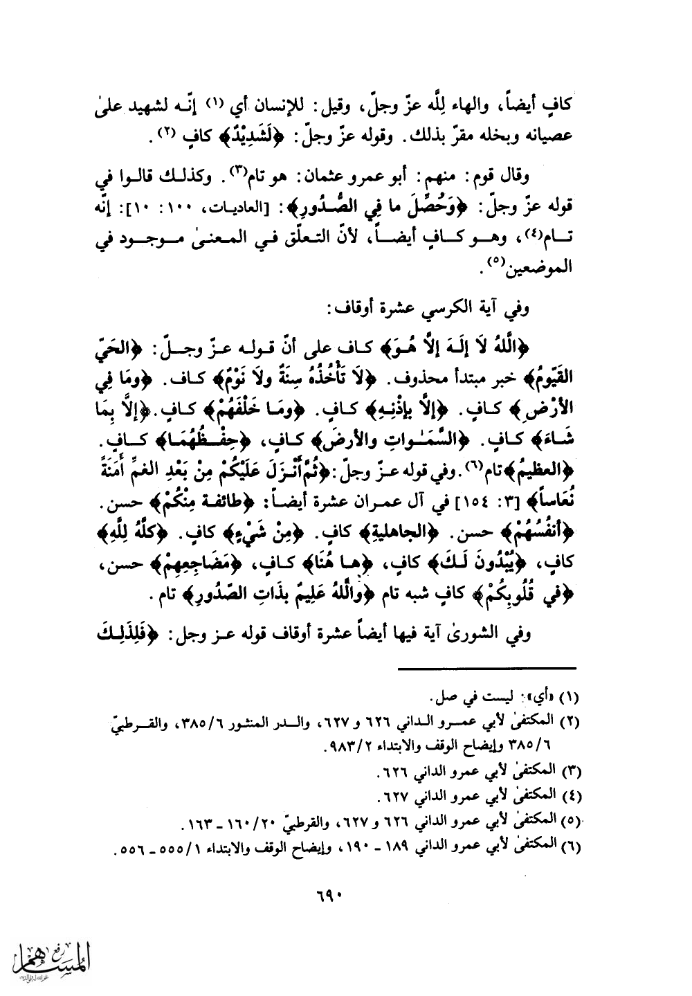 وقال قوم: منهم: أبو عمرو عثمان: هو تام.