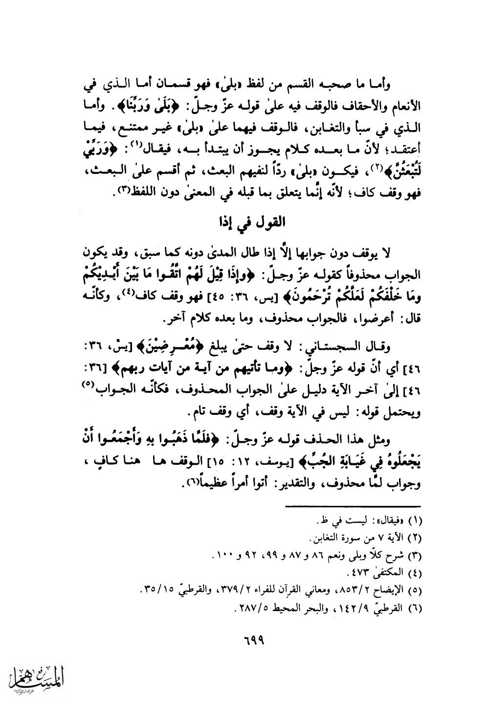 وأما الذي في سبأ والتغابن، فالوقف فيهما على (بَلَى) غير ممتنع، فيما