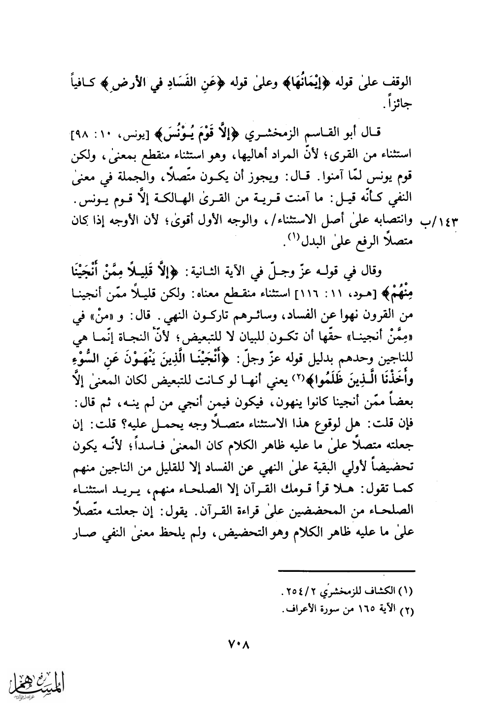 قال أبو القاسم الزمخشري (إلا قَوْمَ يُوْنُسَ)