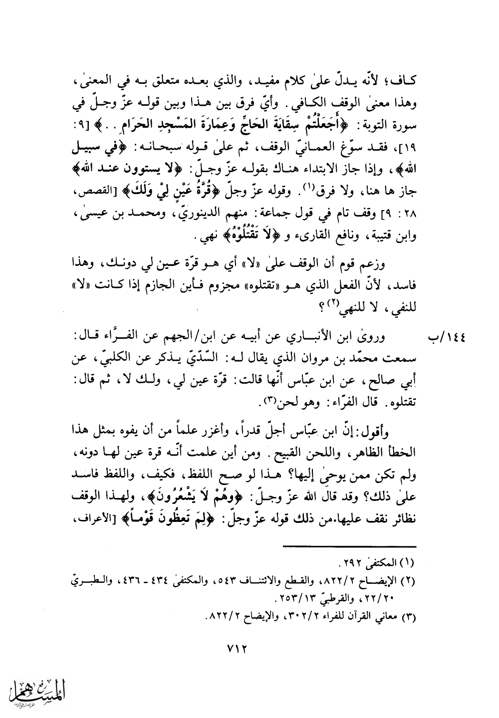 وهذا معنى الوقف الكافي.