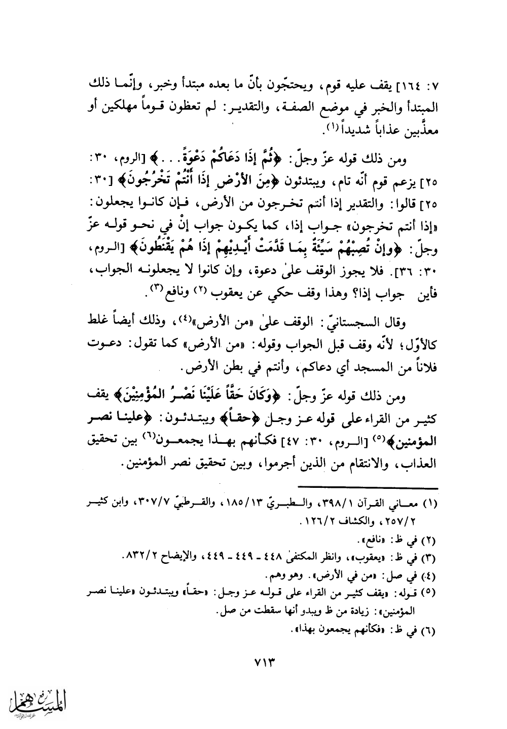 وقال السجستانى: الوقف على "من الأرض"، وذلك أيضاً غلط