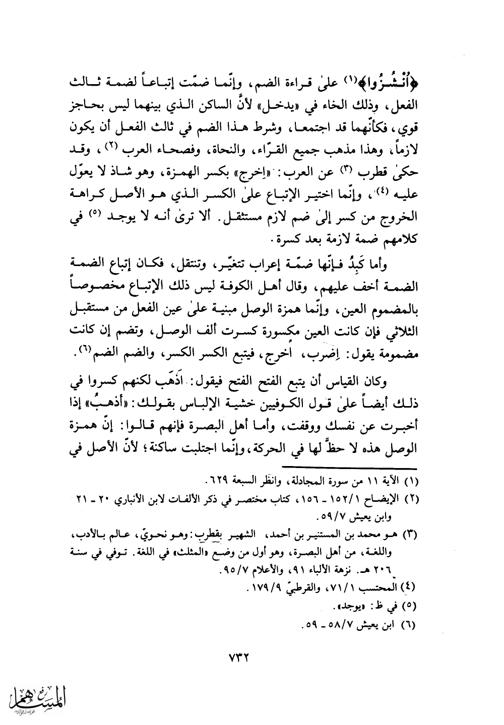لازماً، وهذا مذهب جميع القرّاء، والنحاة، وفصحاء العرب، وقد