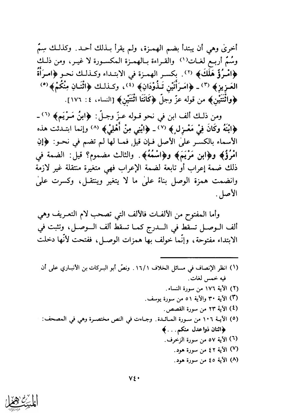 ومن ذلك ألف ابن في نحو قوله عزَّ وجلَّ: (ابنُ مَرْيَم)