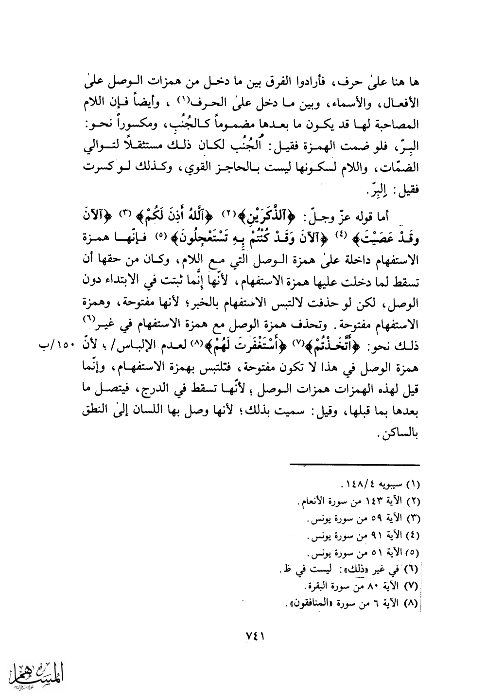 (أسْتَغْفَرتَ لَهُمْ) لعدم الإلباس؛ لأن همزة الوصل في هذا لا تكون مفتوحة، فتلتبس بهمزة الاستفهام، وإنما قيل لهذه الهمزات همزات الوصل؛ لأنّها تسقط في الدرج، فيتصل ما بعدها بما قبلها، وقيل: سميت بذلك؛ لأنها وصل بها اللسان إلى النطق بالساكن.