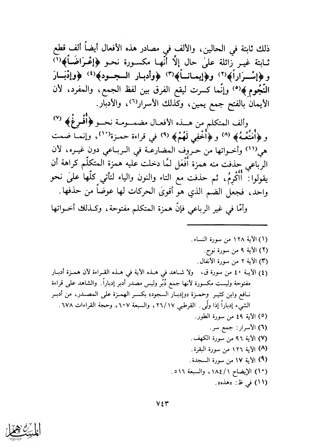 و (إسْرَاراً) و (إيماناً) (وأدبار السجود) (وإدْبَارَ النجُوم)
