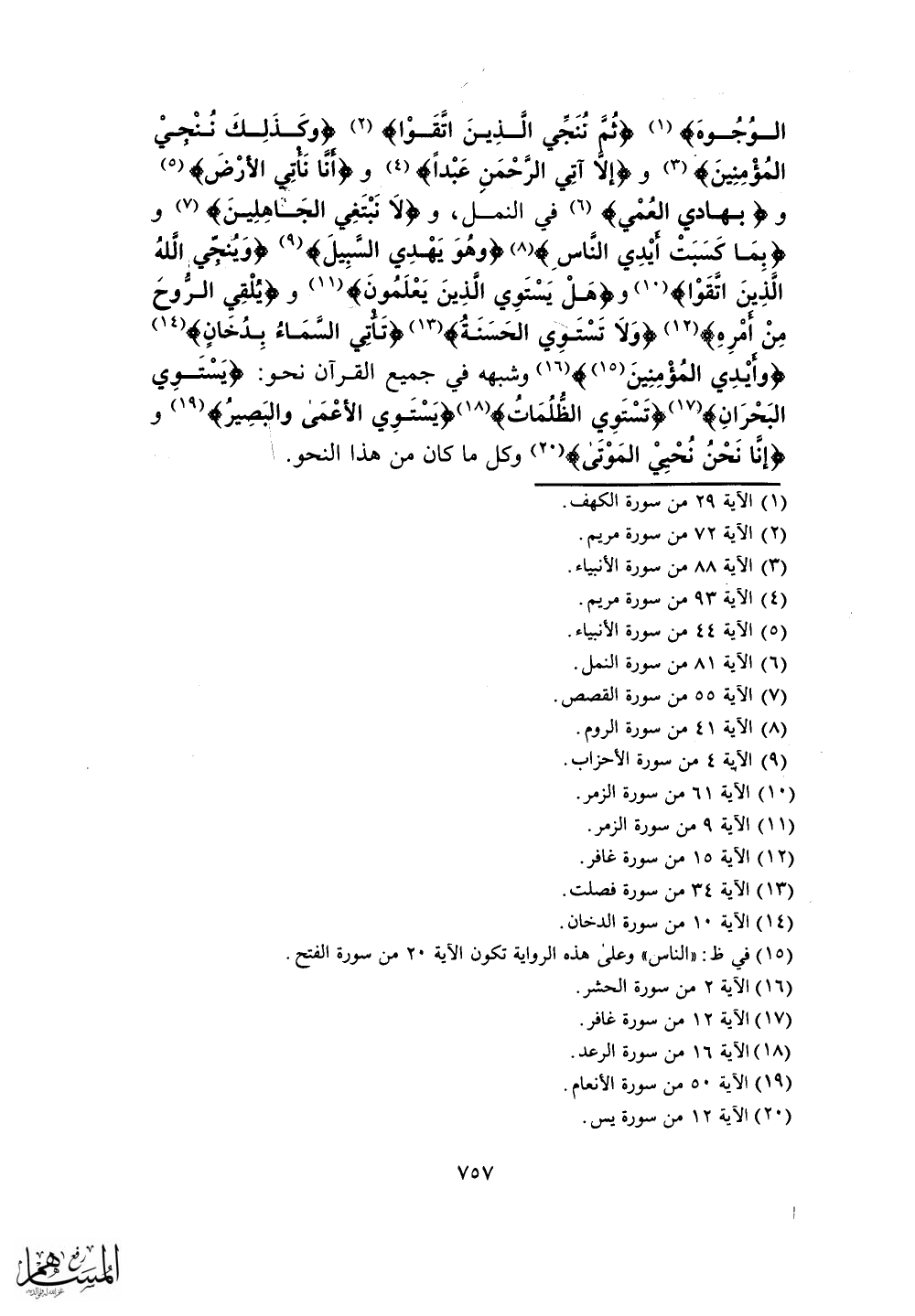 (وَيُنجِّي الَلهُ الَذِينَ اتَقَوْا) و (هَلْ يَسْتَوِي الَذِينَ يَعْلَمُونَ) و (يُلْقِي الروحَ