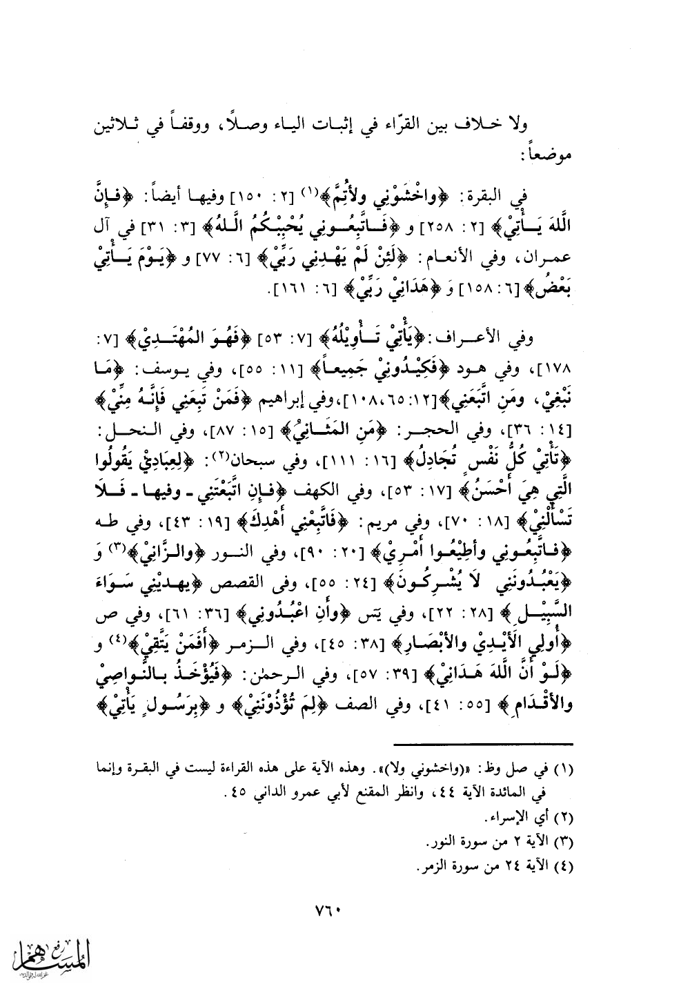 و (يَوْمَ يَأْتِيْ بَعْضُ) وَ (هَدَانِيْ رَبيْ) .