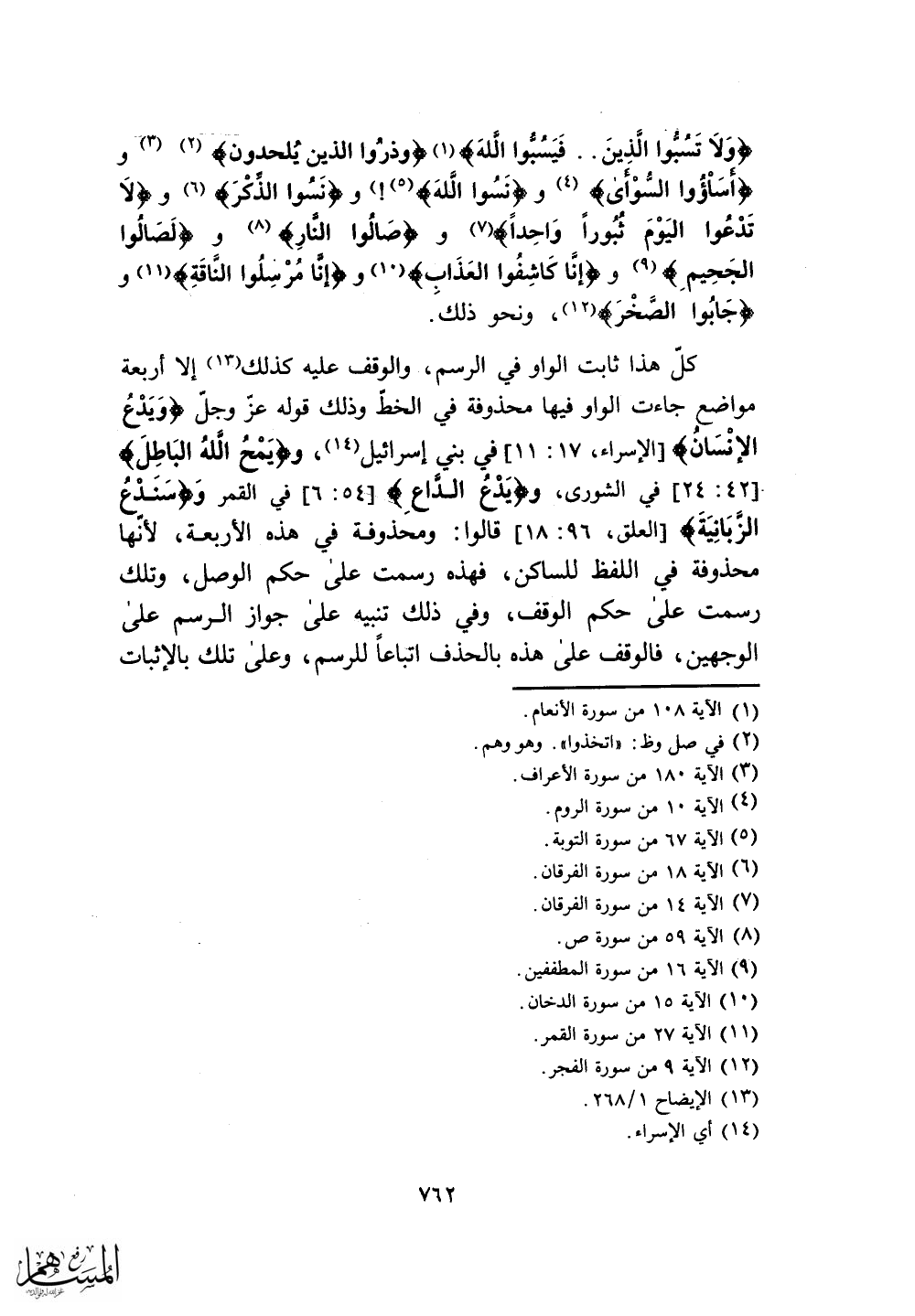 مواضع جاءت الواو فيها محذوفة في الخط وذلك قوله عر وجل