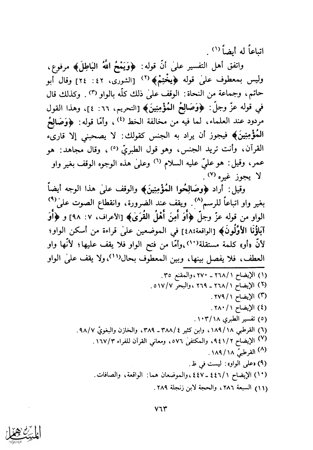 وقال أبو حاتم، وجماعة من النحاة: الوقف على ذلك كله بالواو.