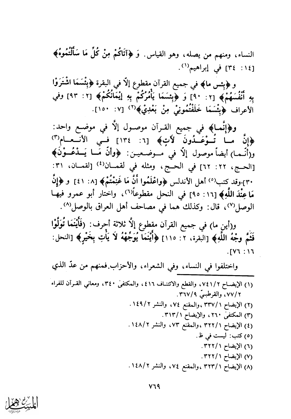 النساء، ومنهم من يصله، وهو القياس.