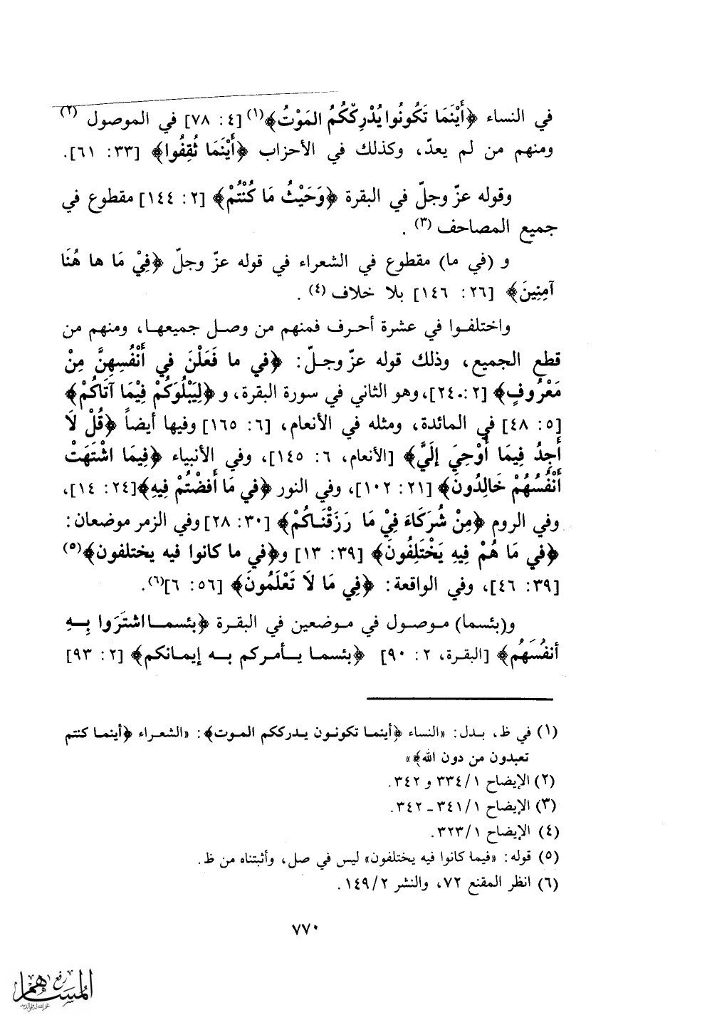 في النساء (أيْنَمَا تَكُونُوا يُدْرِككُمُ المَوْتُ) في الموصول
