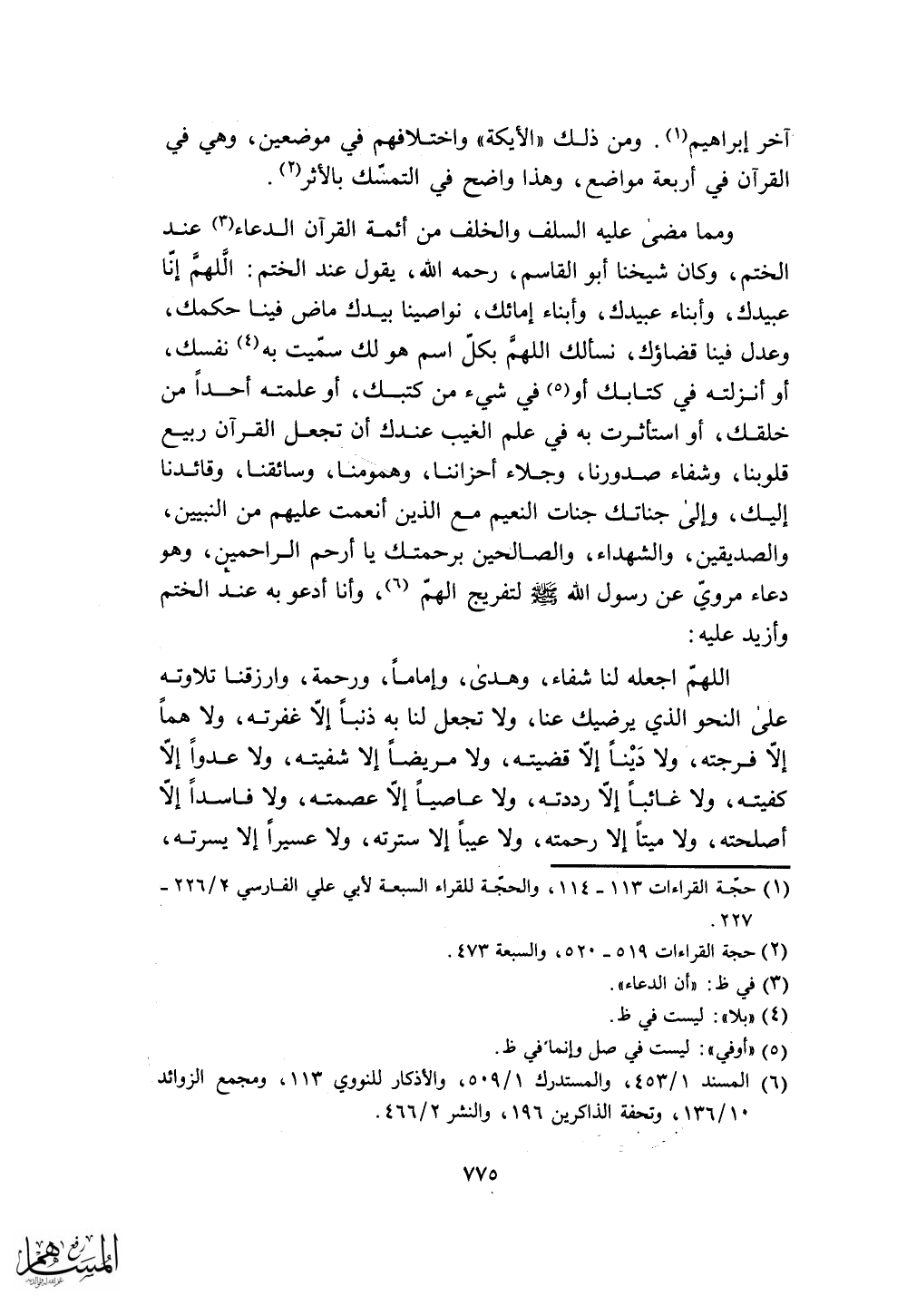ومما مضى عليه السلف والخلف من أئمة القرآن الدعاء عند