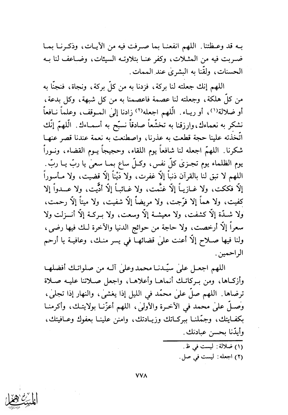 اللهم اجعله زادنا إلى الموقف، وعلماً نافعاً نشكر به نعماءك، وارزقنا به تخشّعاً صادقاً نسبّح به أسماءك.