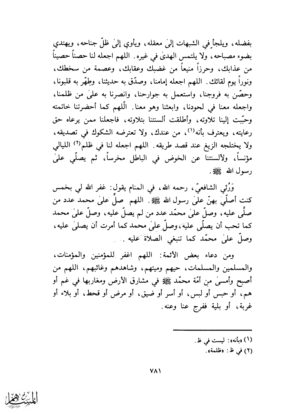 الّلهم كما أحضرتنا خاتمته وحبّبت إلينا تلاوته، وأطلقت ألسنتنا بتلاوته، فاجعلنا ممن يرعاه حق رعايته، ويعترف بأنه، من عندك، ولا تعترضه الشكوك في تصديقه، ولا يختلجه الزيغ عند قصد طريقه.