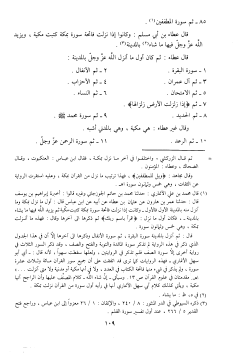أخرى إلّا سورة الصف فلم تذكر في الروايتين، ولعلها سقطت سهوا، لأنه قال:- أي أبو سهل الأنماري- فهذه الروايات كما ترى قد اتفقت على أن جميع سور القرآن مائة وثلاث عشرة سورة، ولم يذكر في شيء منها فاتحة الكتاب في العدد، ولا في أنها مكية أو مدنية ولا متى أنزلت ... » اه. مقدمتان في علوم القرآن ص 13. وسيأتي- إنّ شاء الله- كلام المصنّف عليها وأن الراجح أنها مكية، ويأتي كذلك كلام أبي سهل الأنماري أنها في رأيه أول سورة من القرآن نزلت بمكة.