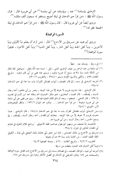 (4) سنن الترمذي، أبواب فضائل القرآن باب ما جاء في حم الدخان 8/ 198، قال الترمذي: هذا حديث غريب لا نعرفه إلا من هذا الوجه. وهشام أبو المقدام- أحد رجال السند- يضعّف، ولم يسمع الحسن- أحد رجال السند- من أبي هريرة اه.