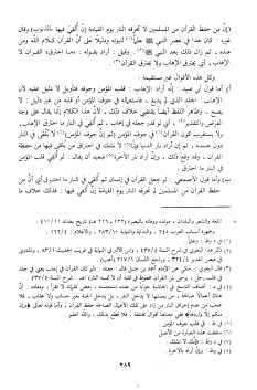 أ) أما قول أبي عبيد: إنّه أراد الإهاب: قلب المؤمن وجوفه فتأويل لا دليل عليه لأن الإهاب: الجلد الذي لم يدبغ، فاستعماله في جوف المؤمن أو قلبه من غير دليل: لا يصح، وظاهر اللفظ أيضا يقتضي خلاف ذلك، لأنّ هذا الكلام إنّما يقال على وجه الفرض والتقدير «4»، أي لو قدر جعله في إهاب، ثم ألقي في النار ما احترق الإهاب، ولا يستغرب كون القرآن «5» في جوف المؤمن (ثم إنّ جوف المؤمن) «6» لا يلقى في النار دون جسده، ثم إن أراد نار الدنيا فإنّا «7» لا نشك في احتراق من يلقي فيها من حفظة القرآن، وقد وقع ذلك، وإن أراد نار الآخرة «8» فبعيد أن يقال: لو ألقي قلب المؤمن في النار ما احترق.