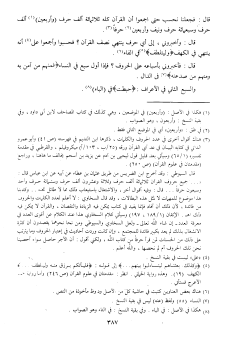 قال: فجعلنا نحسب حتى اجمعوا أن القرآن كله ثلاثمائة ألف حرف (وأربعين) «1» ألف حرف وسبعمائة حرف ونيف وأربعين «2» حرفا «3».