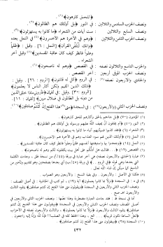 أما في نسخة ظ: فقد جاءت العبارة مضطربة وهذا نصّها: ونصف الحزب الثاني والأربعين في أصل المصنف ونصف الحزب الثاني والأربعين في السجدة وَيَقُولُونَ مَتى هذَا الْفَتْحُ إِنْ كُنْتُمْ صادِقِينَ يتلوه الثالث والأربعون نُزُلًا بِما كانُوا يَعْمَلُونَ، والثالث والأربعون نصفه في الأحزاب لَعَلَّ السَّاعَةَ تَكُونُ قَرِيباً ... الخ، وهذا الخلط كله في الصلب!! فإنّا لله وإنّا إليه راجعون.