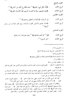 (8) تقدم أن الحزب الحادي والخمسين ينتهي نصفه في نهاية سورة الأحقاف، أو في الآية التاسعة من سورة القتال- وهذا هو المعمول به في المصاحف وهو اختيار المصنف كما مرّ- وهنا يتكلم المصنف عن الربع الأول والثالث من كل حزب.