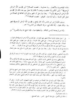 يلي: صلى معاوية بالمدينة صلاة فجهر فيها بالقراءة، فقرأ بِسْمِ اللَّهِ الرَّحْمنِ الرَّحِيمِ لأم القرآن، ولم يقرأ بها للسورة التي بعدها، حتى قضى تلك القراءة، ولم يكبر حين يهوي، حتى قضى تلك الصلاة، فلما سلم ناداه من سمع ذلك من المهاجرين من كل مكان، يا معاوية، أسرقت الصلاة أم نسيت؟ فلما صلى بعد ذلك قرأ بِسْمِ اللَّهِ الرَّحْمنِ الرَّحِيمِ* للسورة التي بعد أم القرآن ... اه.