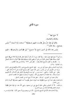 (1) أي لا نسخ فيها يعول عليه، وإلا فقد سبق له أن ذكر أن قوله تعالى سَنُقْرِئُكَ فَلا تَنْسى ناسخ لقوله سبحانه وَلا تَعْجَلْ بِالْقُرْآنِ مِنْ قَبْلِ أَنْ يُقْضى إِلَيْكَ وَحْيُهُ ولقوله لا تُحَرِّكْ بِهِ لِسانَكَ لِتَعْجَلَ بِهِ .. وقد رد القول بالنسخ هناك وفنده. انظر (ص 759 و 888) من هذا الكتاب.