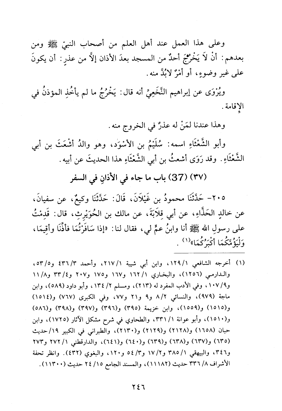 179 - حَدَّثَنَا هَنَّادٌ، قَالَ: حَدَّثَنَا هُشَيْمٌ، عَنْ أَبِي الزُّبَيْرِ، عَنْ نَافِعِ بْنِ جُبَيْرِ بْنِ مُطْعِمٍ، عَنْ أَبِي عُبَيْدَةَ بْنِ عَبْدِ اللهِ بْنِ مَسْعُودٍ، قَالَ: قَالَ عَبْدُ اللهِ: إِنَّ الْمُشْرِكِينَ شَغَلُوا رَسُولَ اللهِ صَلَّى اللَّهُ عَلَيْهِ وَسَلَّمَ عَنْ أَرْبَعِ صَلَوَاتٍ يَوْمَ الخَنْدَقِ، حَتَّى ذَهَبَ مِنَ اللَّيْلِ مَا شَاءَ اللَّهُ، فَأَمَرَ بِلاَلاً فَأَذَّنَ، ثُمَّ أَقَامَ فَصَلَّى الظُّهْرَ، ثُمَّ أَقَامَ فَصَلَّى العَصْرَ، ثُمَّ أَقَامَ فَصَلَّى الْمَغْرِبَ، ثُمَّ أَقَامَ فَصَلَّى العِشَاءَ.