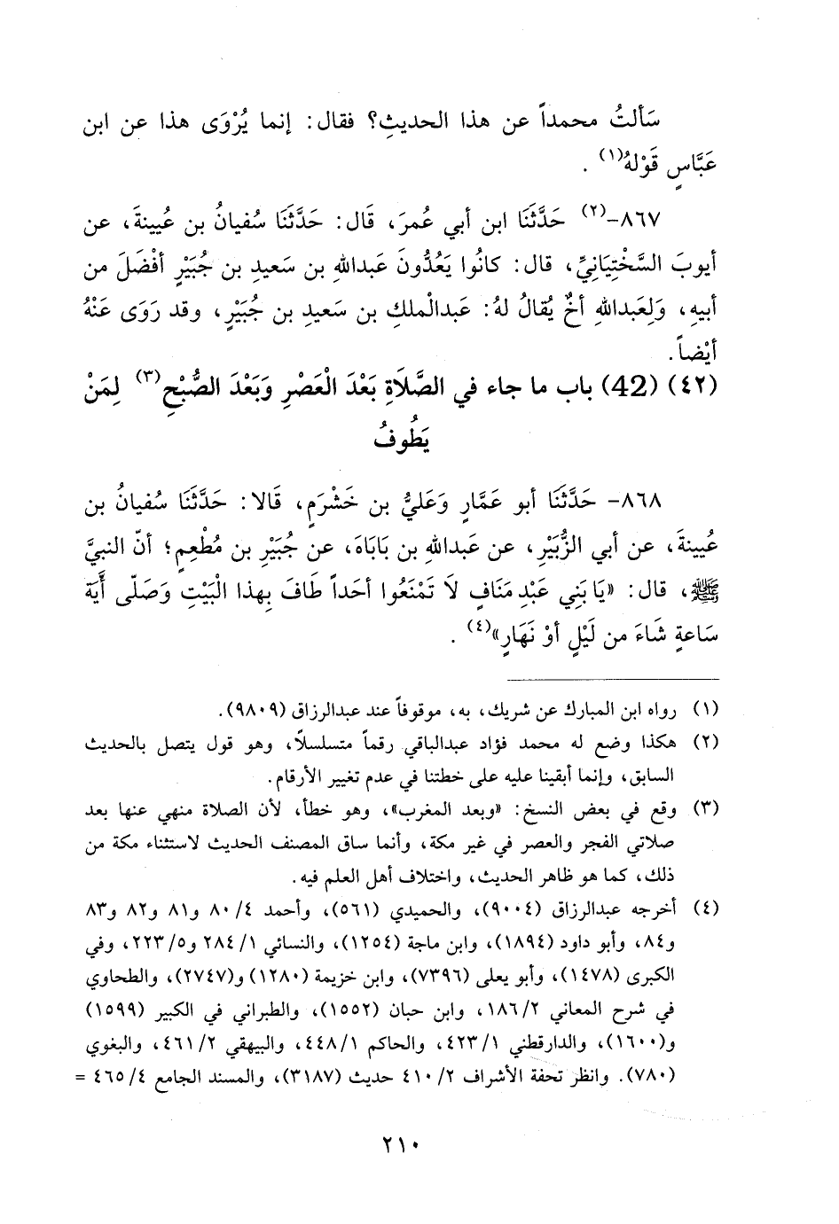 حَدِيثُ ابْنِ عَبَّاسٍ حَدِيثٌ حَسَنٌ صَحِيحٌ، وَقَدْ كَرِهَ قَوْمٌ مِنْ أَهْلِ العِلْمِ أَنْ يَطُوفَ الرَّجُلُ بِالبَيْتِ وَبَيْنَ الصَّفَا وَالمَرْوَةِ رَاكِبًا إِلاَّ مِنْ عُذْرٍ، وَهُوَ قَوْلُ الشَّافِعِيِّ.