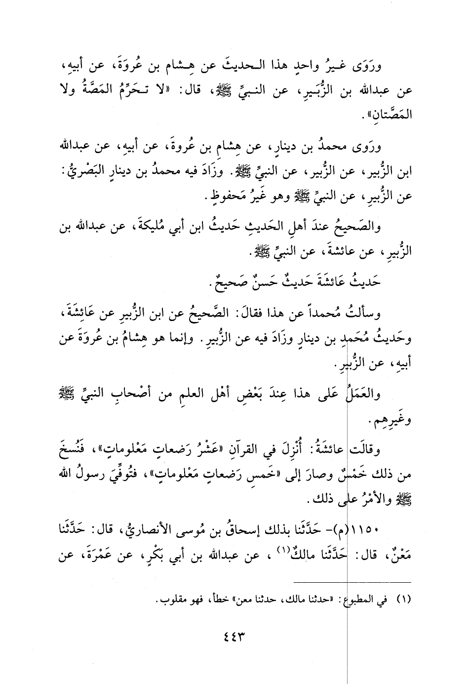 10 - أَبْوَابُ الرَّضَاعِ عَنْ رَسُولِ اللهِ صَلَّى اللَّهُ عَلَيْهِ وَسَلَّمَ