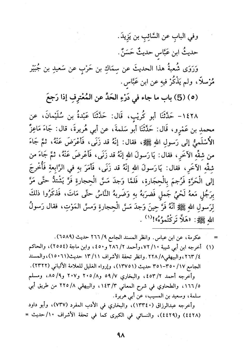 حَدِيثُ عُبَادَةَ بْنِ الصَّامِتِ حَدِيثٌ حَسَنٌ صَحِيحٌ وقَالَ الشَّافِعِيُّ: لَمْ أَسْمَعْ فِي هَذَا البَابِ أَنَّ الْحَدَّ يَكُونُ كَفَّارَةً لأَهْلِهِ شَيْئًا أَحْسَنَ مِنْ هَذَا الحَدِيثِ قَالَ الشَّافِعِيُّ: وَأُحِبُّ لِمَنْ أَصَابَ ذَنْبًا فَسَتَرَهُ اللَّهُ عَلَيْهِ أَنْ يَسْتُرَ عَلَى نَفْسِهِ وَيَتُوبَ فِيمَا بَيْنَهُ وَبَيْنَ رَبِّهِ وَكَذَلِكَ رُوِيَ عَنْ أَبِي بَكْرٍ، وَعُمَرَ أَنَّهُمَا أَمَرَا رَجُلاً أَنْ يَسْتُرَ عَلَى نَفْسِهِ.
