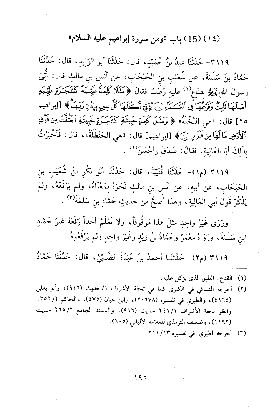 3191 - حَدَّثَنَا أَبُو مُوسَى مُحَمَّدُ بْنُ الْمُثَنَّى، قَالَ: حَدَّثَنَا مُحَمَّدُ بْنُ خَالِدٍ ابْنُ عَثْمَةَ، قَالَ: حَدَّثَنَا عَبْدُ اللهِ بْنُ عَبْدِ الرَّحْمَنِ الجُمَحِيُّ، قَالَ: حَدَّثَنَا ابْنُ شِهَابٍ الزُّهْرِيُّ، عَنْ عُبَيْدِ اللهِ بْنِ عَبْدِ اللهِ بْنِ عُتْبَةَ، عَنِ ابْنِ عَبَّاسٍ، أَنَّ رَسُولَ اللهِ صَلَّى اللَّهُ عَلَيْهِ وَسَلَّمَ قَالَ لأَبِي بَكْرٍ فِي مُنَاحَبَةِ {الم غُلِبَتِ الرُّومُ} أَلاَ احْتَطْتَ يَا أَبَا بَكْرٍ، فَإِنَّ البِضْعَ مَا بَيْنَ الثَّلاَثِ إِلَى تِسْعٍ.