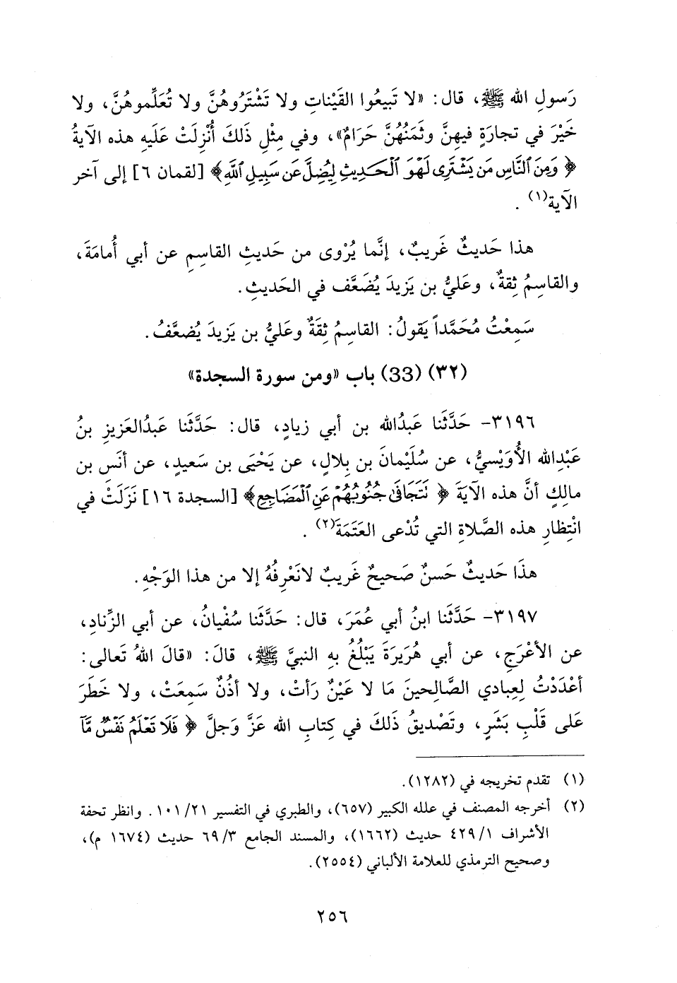 3298 - حَدَّثَنَا عَبْدُ بْنُ حُمَيْدٍ، وَغَيْرُ وَاحِدٍ، وَالمَعْنَى وَاحِدٌ، قَالُوا: حَدَّثَنَا يُونُسُ بْنُ مُحَمَّدٍ، قَالَ: حَدَّثَنَا شَيْبَانُ بْنُ عَبْدِ الرَّحْمَنِ، عَنْ قَتَادَةَ، قَالَ: حَدَّثَ الحَسَنُ، عَنْ أَبِي هُرَيْرَةَ، قَالَ: بَيْنَمَا نَبِيُّ اللهِ صَلَّى اللَّهُ عَلَيْهِ وَسَلَّمَ جَالِسٌ وَأَصْحَابُهُ إِذْ أَتَى عَلَيْهِمْ سَحَابٌ، فَقَالَ نَبِيُّ اللهِ صَلَّى اللَّهُ عَلَيْهِ وَسَلَّمَ: هَلْ تَدْرُونَ مَا هَذَا؟ فَقَالُوا: اللَّهُ وَرَسُولُهُ أَعْلَمُ. قَالَ: هَذَا العَنَانُ هَذِهِ رَوَايَا الأَرْضِ يَسُوقُهُ اللَّهُ تَبَارَكَ وَتَعَالَى إِلَى قَوْمٍ لاَ يَشْكُرُونَهُ وَلاَ يَدْعُونَهُ ثُمَّ قَالَ: هَلْ تَدْرُونَ مَا فَوْقَكُمْ؟ قَالُوا: اللَّهُ وَرَسُولُهُ أَعْلَمُ. قَالَ: فَإِنَّهَا الرَّقِيعُ، سَقْفٌ مَحْفُوظٌ، وَمَوْجٌ مَكْفُوفٌ، ثُمَّ قَالَ: هَلْ تَدْرُونَ كَمْ بَيْنَكُمْ وَبَيْنَهَا؟ قَالُوا: اللَّهُ وَرَسُولُهُ أَعْلَمُ. قَالَ: بَيْنَكُمْ وَبَيْنَهَا مَسِيرَةُ خَمْسِ مِائَةِ سَنَةٍ. ثُمَّ قَالَ: هَلْ تَدْرُونَ مَا فَوْقَ ذَلِكَ؟ قَالُوا: اللَّهُ وَرَسُولُهُ أَعْلَمُ. قَالَ: فَإِنَّ فَوْقَ ذَلِكَ سَمَاءَيْنِ، مَا بَيْنَهُمَا مَسِيرَةُ خَمْسِمِائَةِ عَامٍ حَتَّى عَدَّ سَبْعَ سَمَاوَاتٍ، مَا بَيْنَ كُلِّ سَمَاءَيْنِ مَا بَيْنَ السَّمَاءِ وَالأَرْضِ،